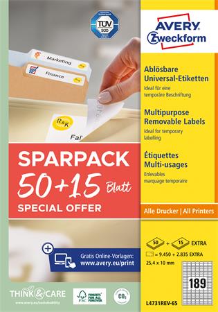 Etikett, univerzális, eltávolítható, 25,4x10 mm, AVERY ZWECKFORM, 9450+2835 etikett/csomag